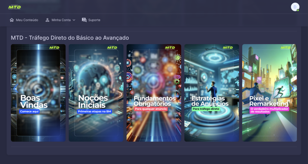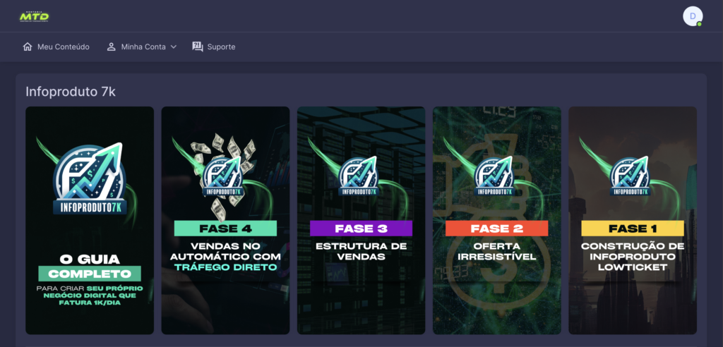 Acesso ao portal MTD com mais de 150 aulas direto ao ponto, grupo de suporte no telegram e no plano FULL acesso a mentorias semanais com conteúdo exclusivo.